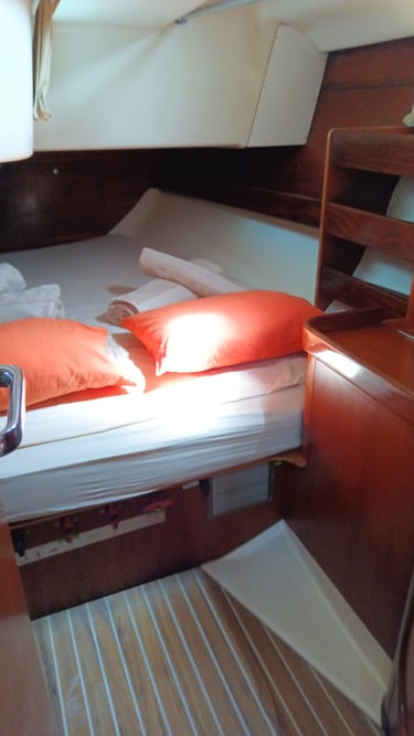 Les cabines du voilier Sailing Heremana sont disponibles pour deux personnes avec petit-déjeuner et transfert en annexe.
